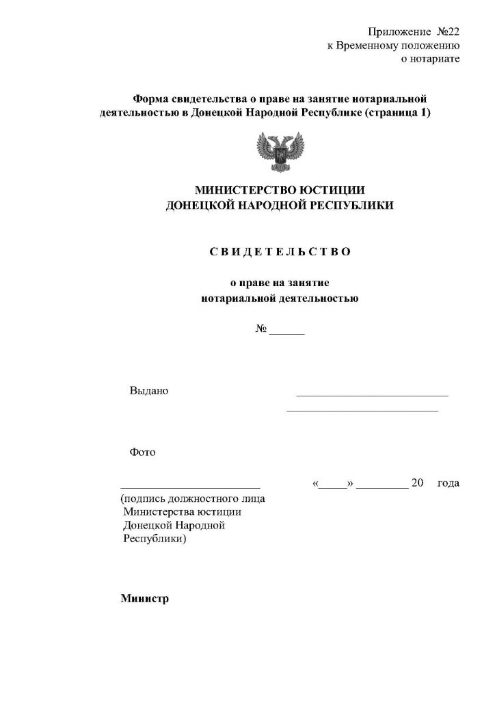 Я, Ф.И.О., прошу выдать мне свидетельство о праве на занятие нотариальной деятельностью в Донецкой Народной Республике.
