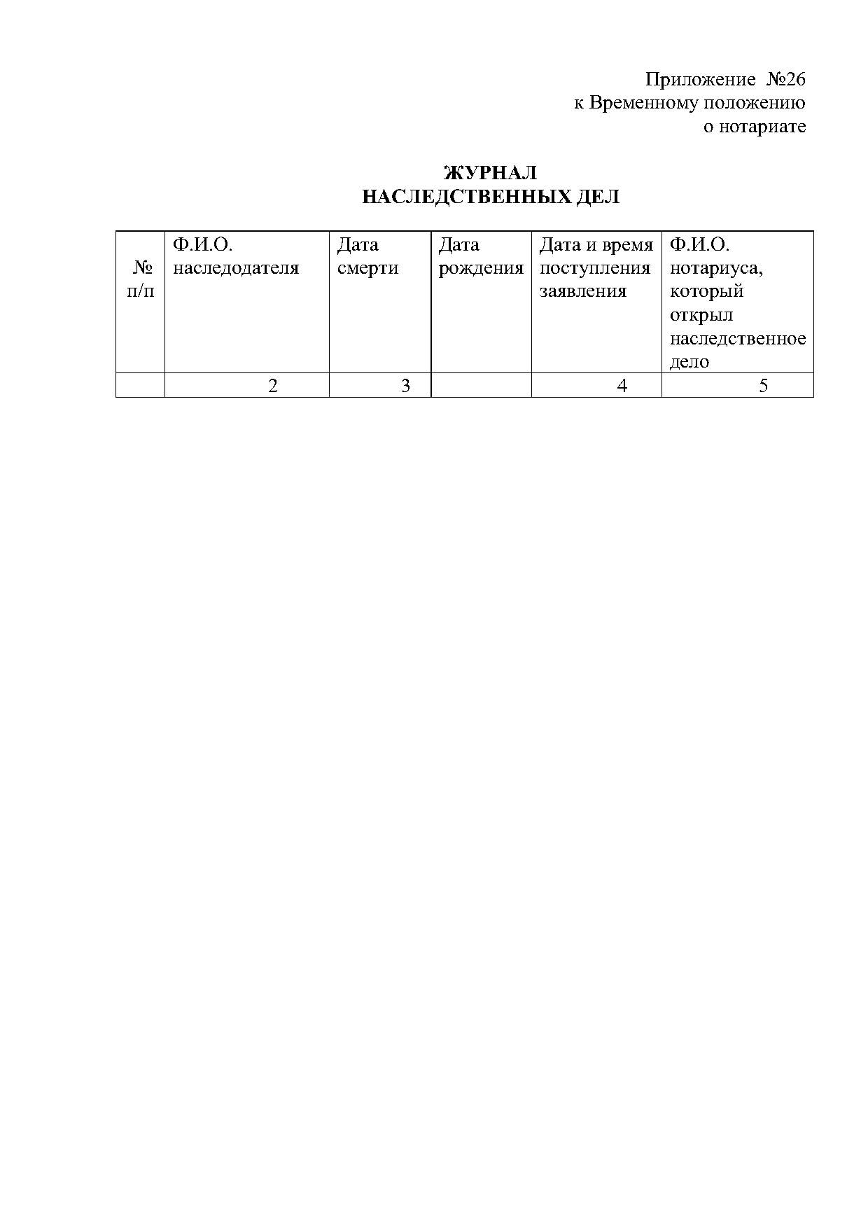23.5. Учет открытых наследственных дел проводит Министерство юстиции Донецкой Народной Республики, путем внесения соответствующих записей в Журнал наследственных дел (Приложение 26).