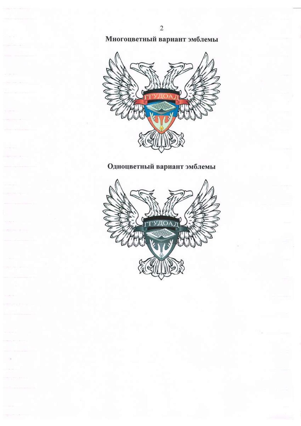 - 2.2. Описание и рисунок геральдического знака — эмблемы Главного государственного управления документационного обеспечения и архивного дела Донецкой Народной Республики (приложение 2).
