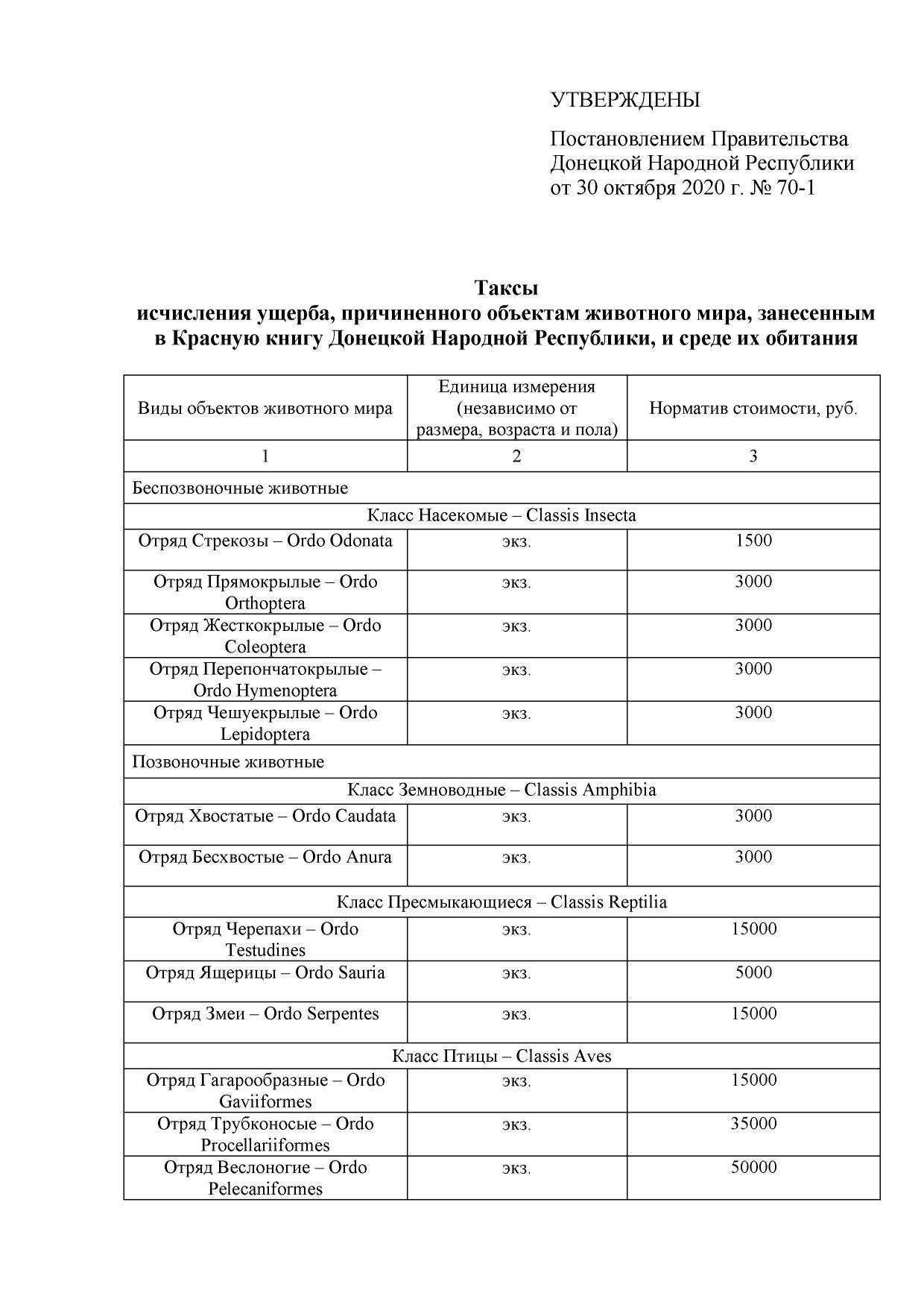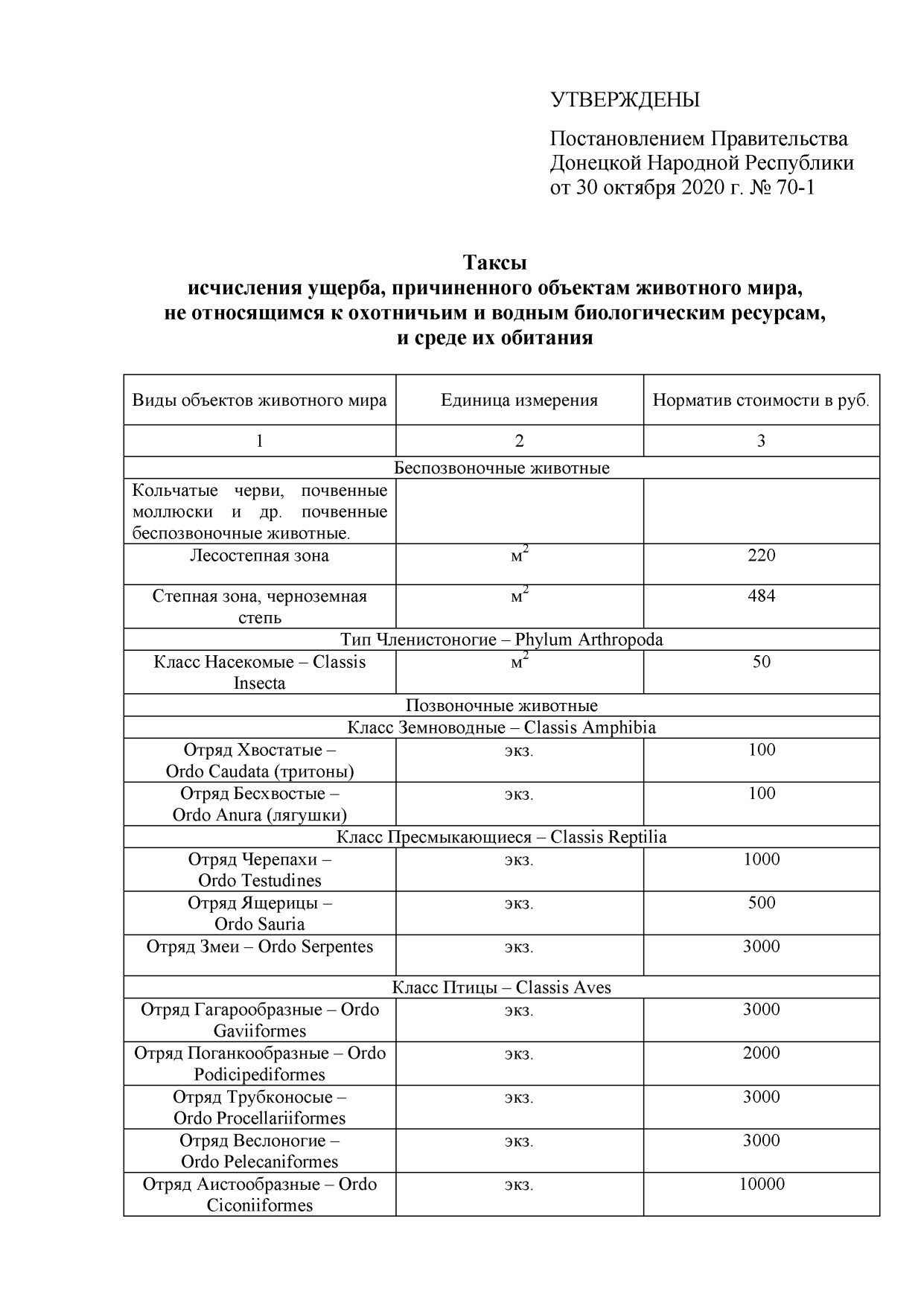 - Утвердить таксы исчисления ущерба, причиненного объектам животного мира, занесенным в Красную книгу Донецкой Народной Республики, и среде их обитания (прилагаются).
