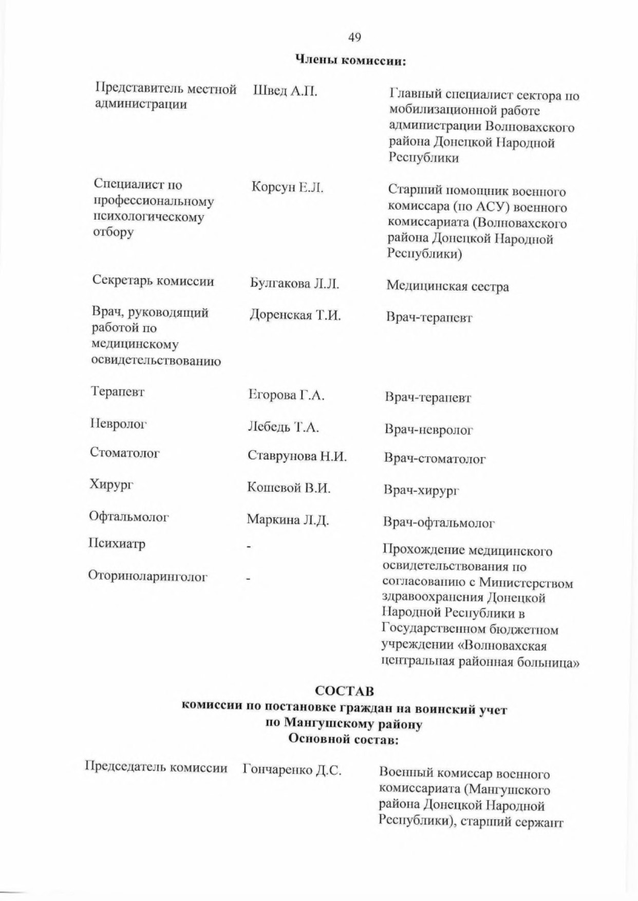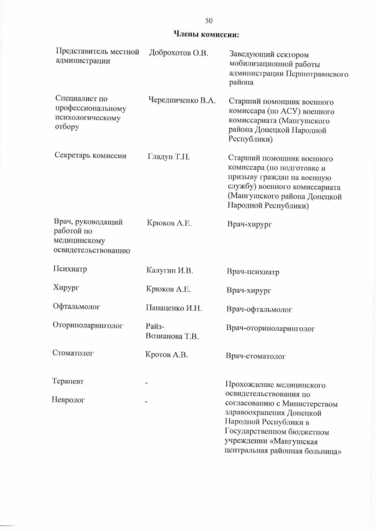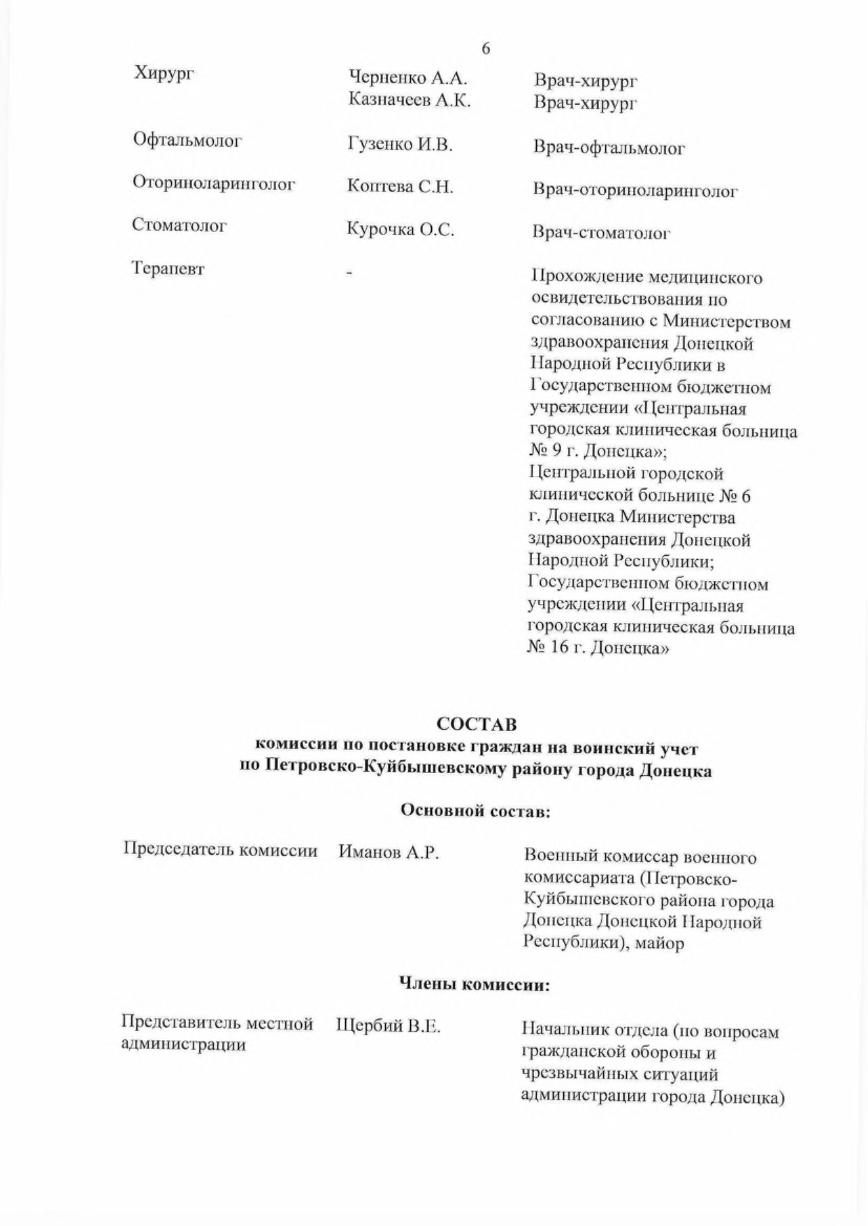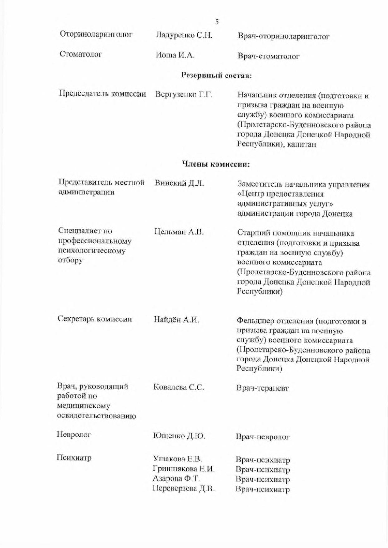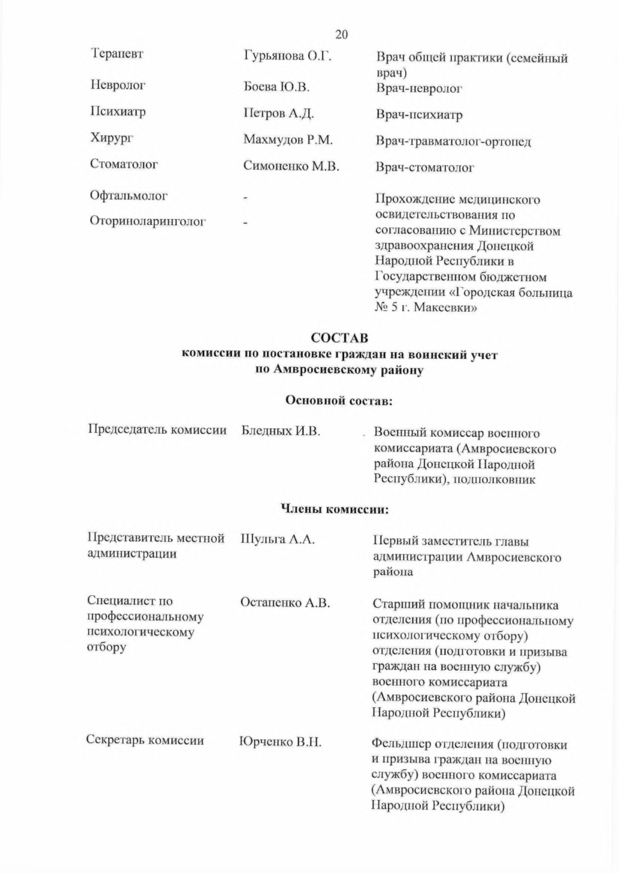 5.2. Обеспечить комиссии врачами-специалистами для организации проведения медицинского освидетельствования граждан, подлежащих первоначальной постановке па воинский учет.