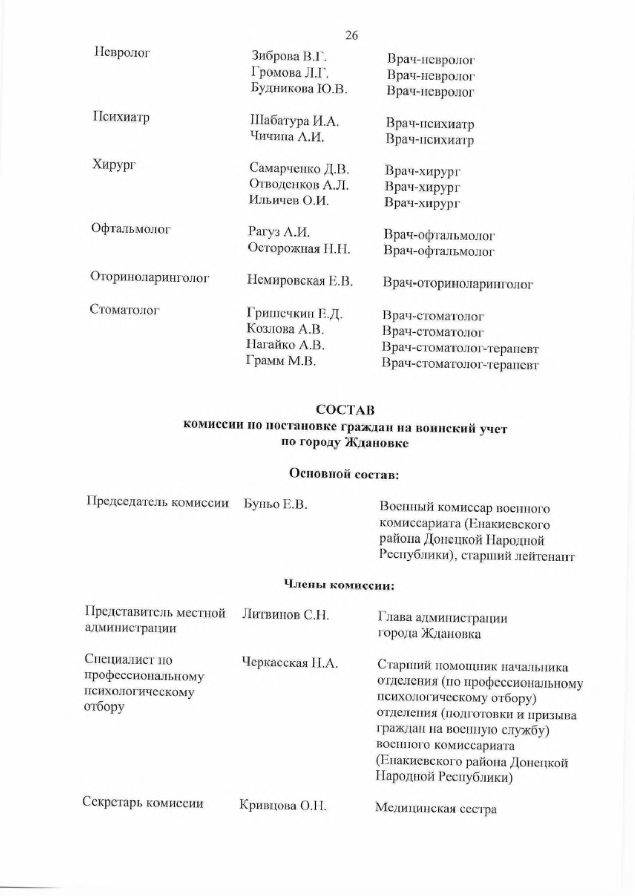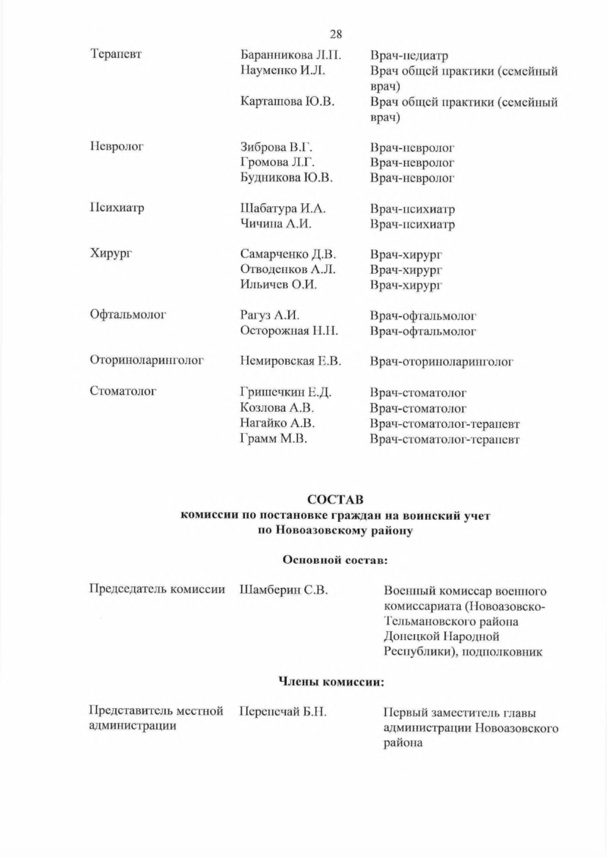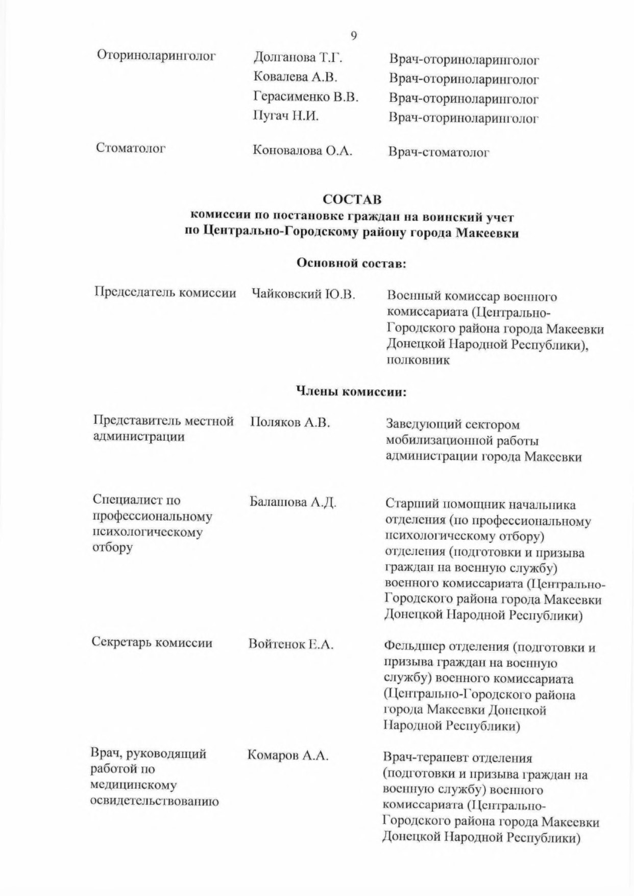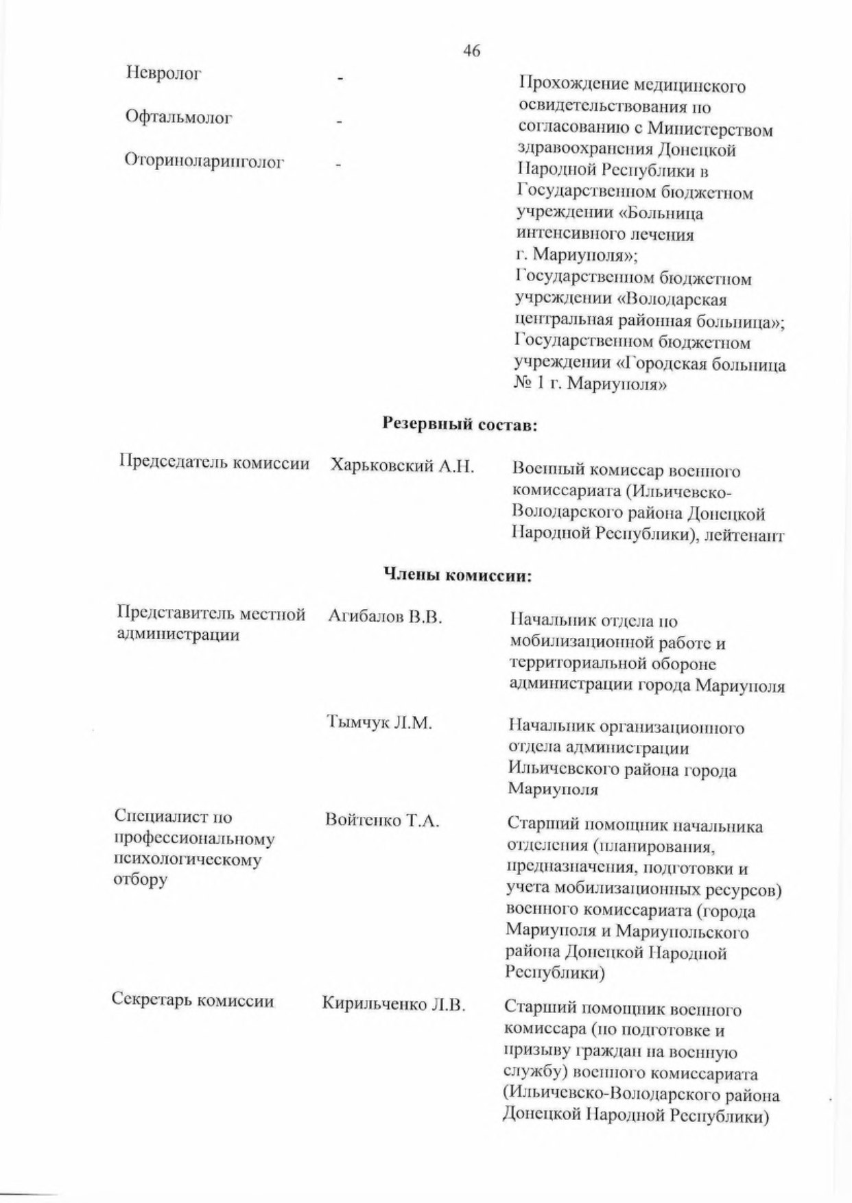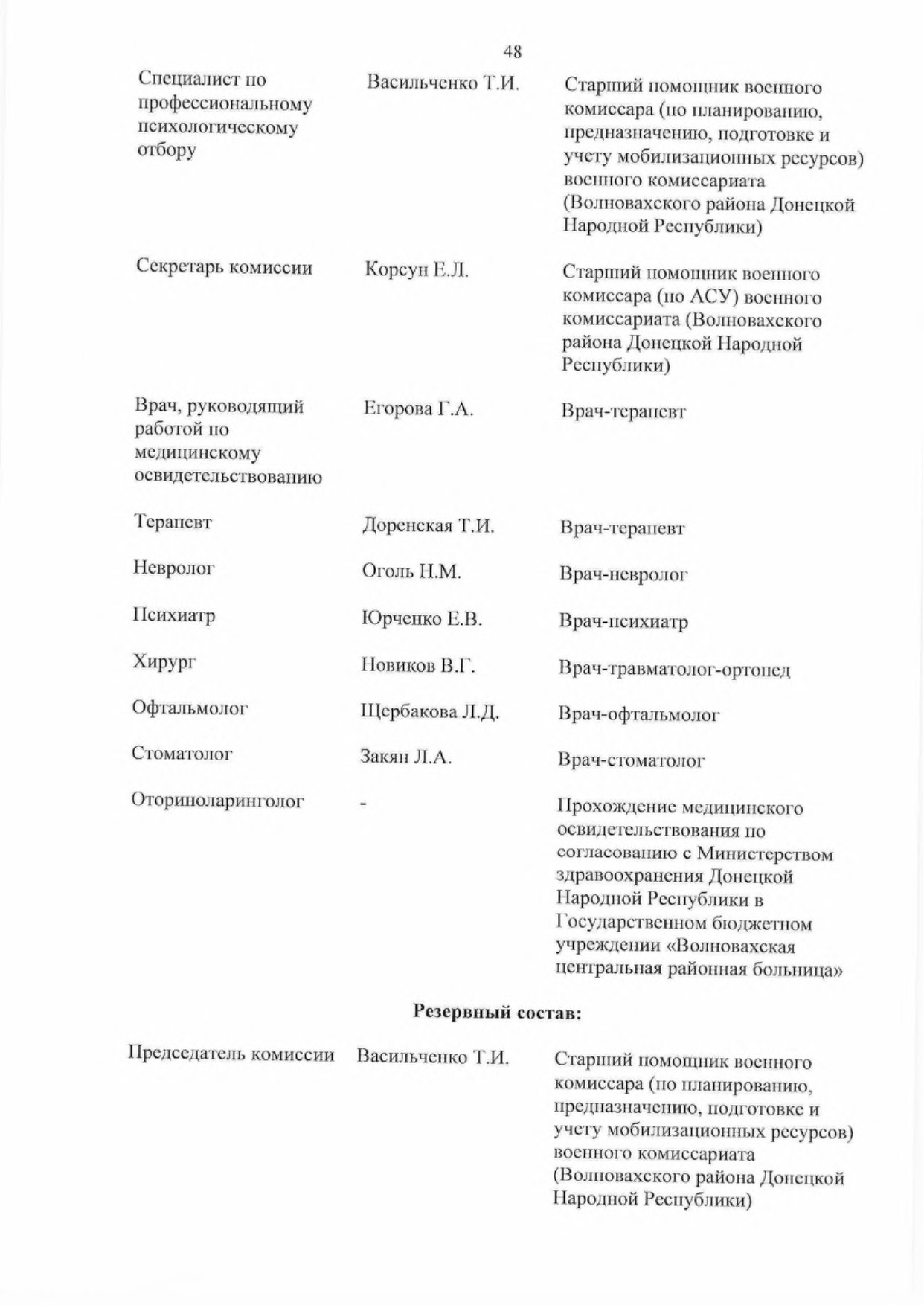 5.2. Обеспечить комиссии врачами-специалистами для организации проведения медицинского освидетельствования граждан, подлежащих первоначальной постановке па воинский учет.