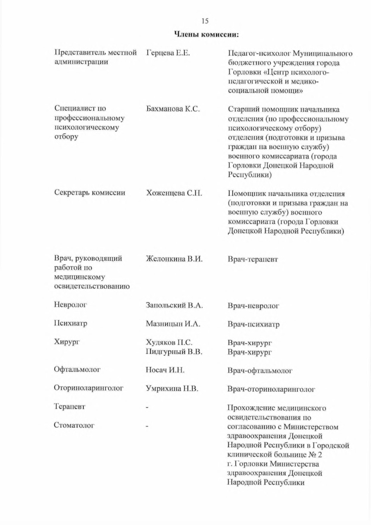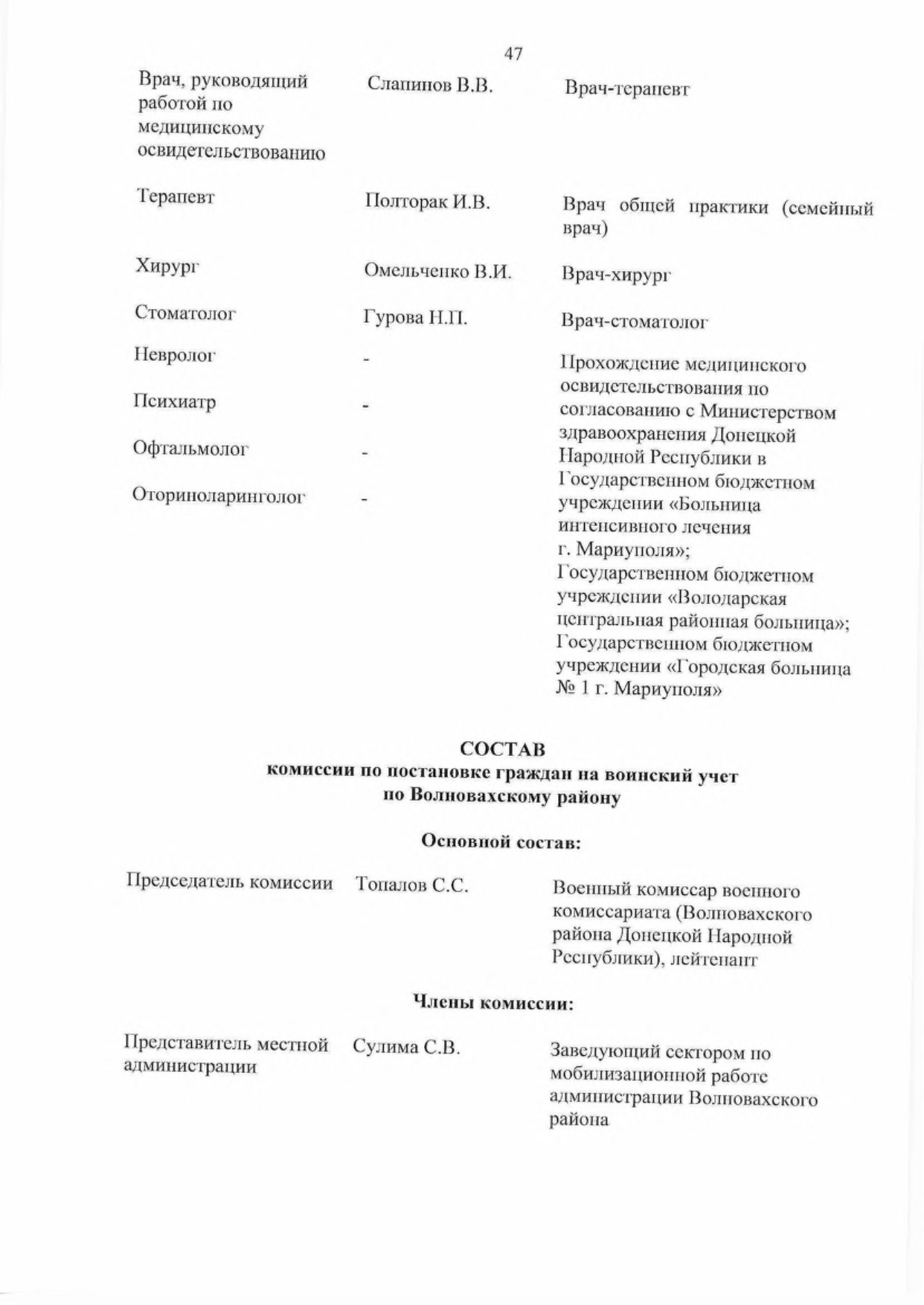 2.3. Проведении медицинского обследования, лечения и освидетельствования граждан, подлежащих первоначальной постановке па воинский учет, в медицинских организациях, расположенных на территории муниципальных образований в Донецкой Народной Республике.