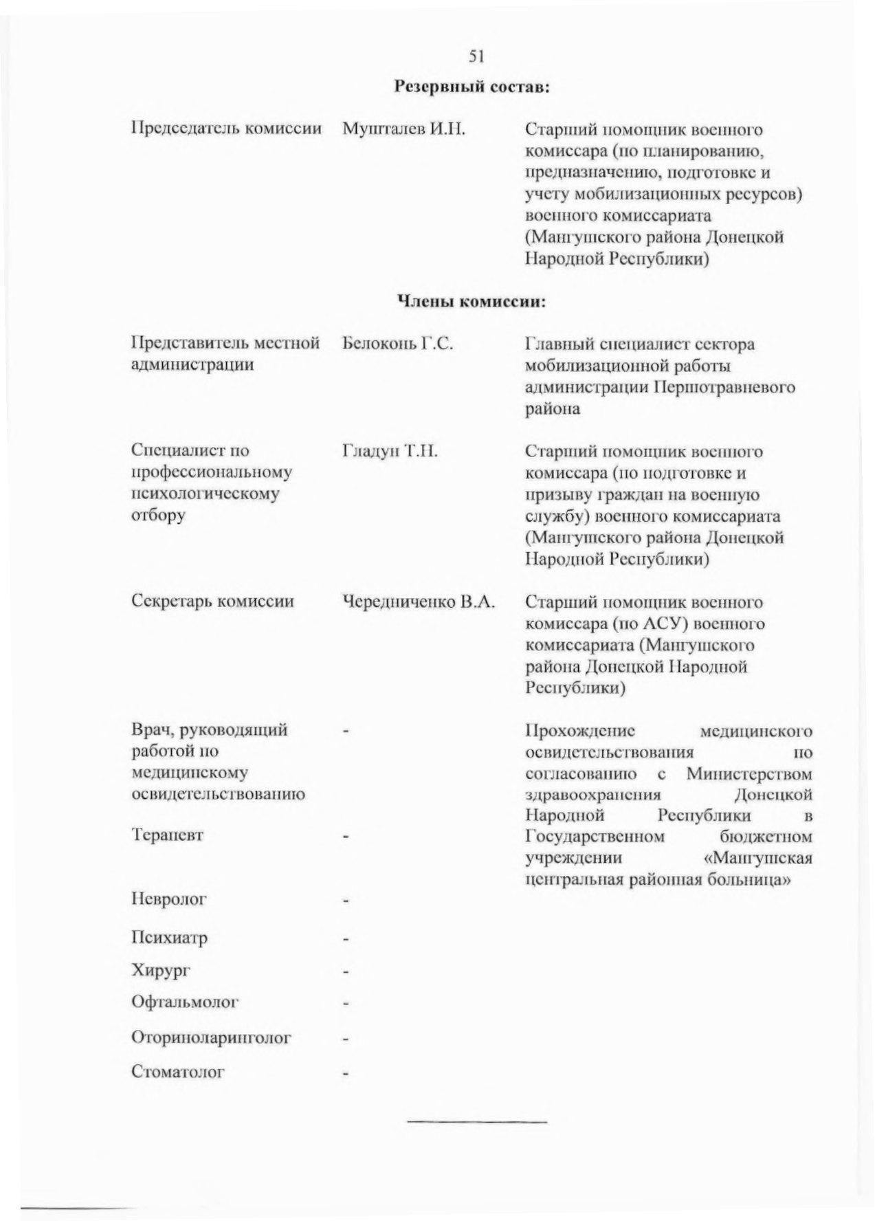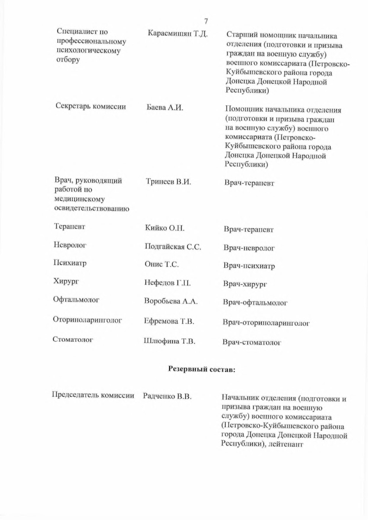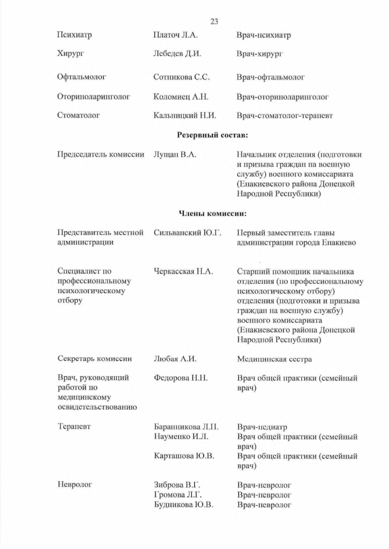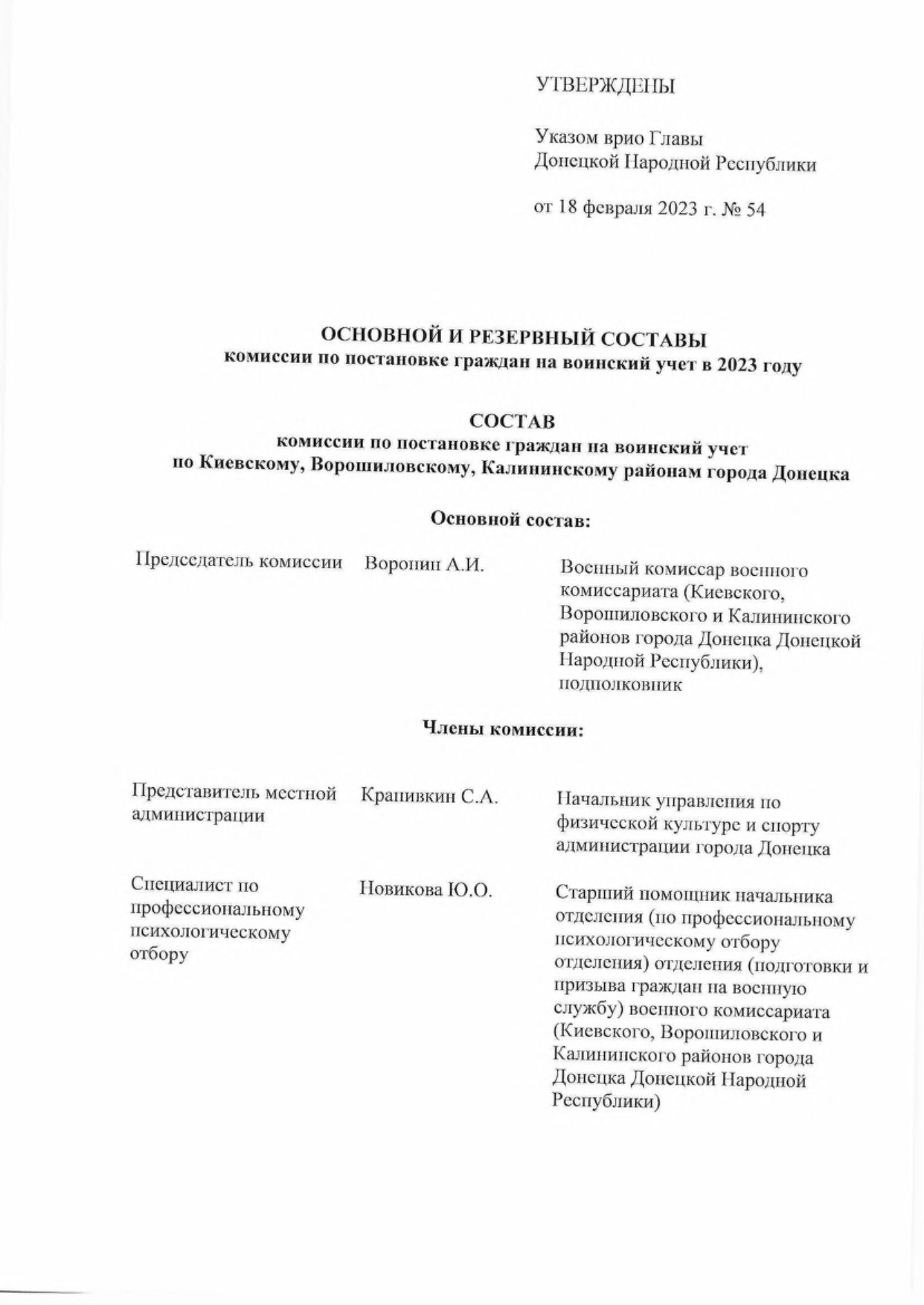 - Утвердить основной и резервный составы комиссий муниципальных образований в Донецкой Народной Республике по первоначальной постановке граждан на воинский учет (далее — комиссии) па 2023 год согласно приложению к настоящему Указу,