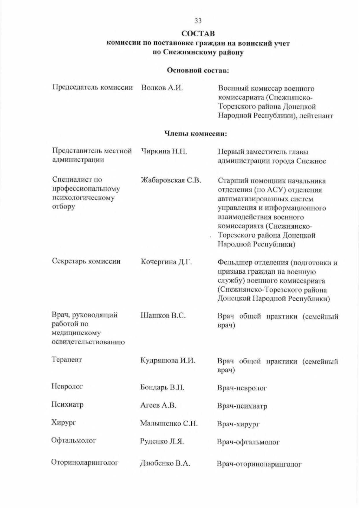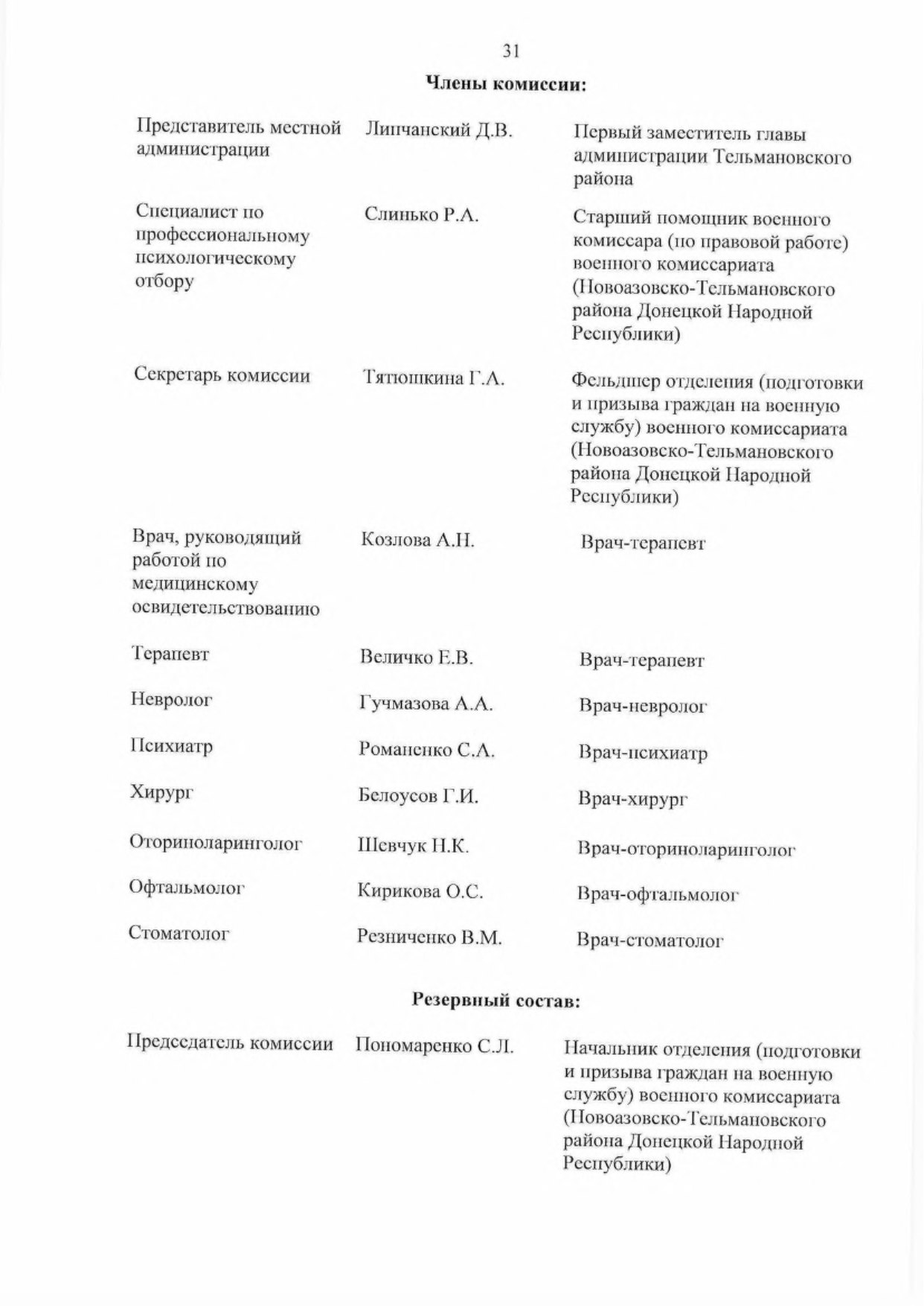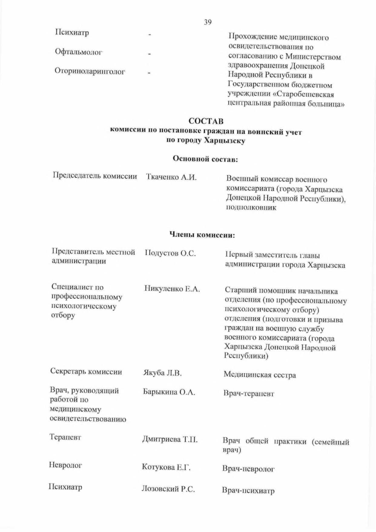- Утвердить основной и резервный составы комиссий муниципальных образований в Донецкой Народной Республике по первоначальной постановке граждан на воинский учет (далее — комиссии) па 2023 год согласно приложению к настоящему Указу,