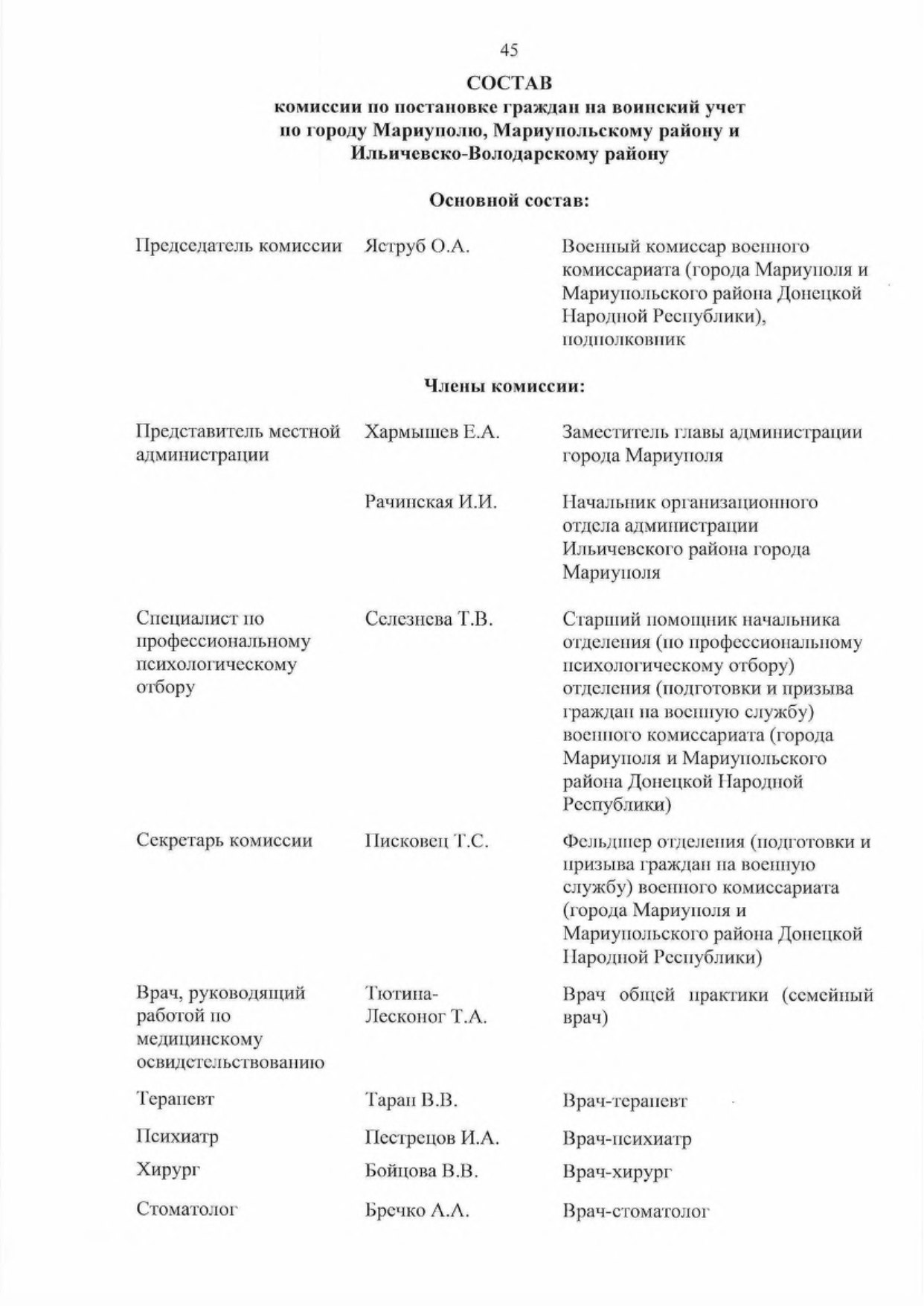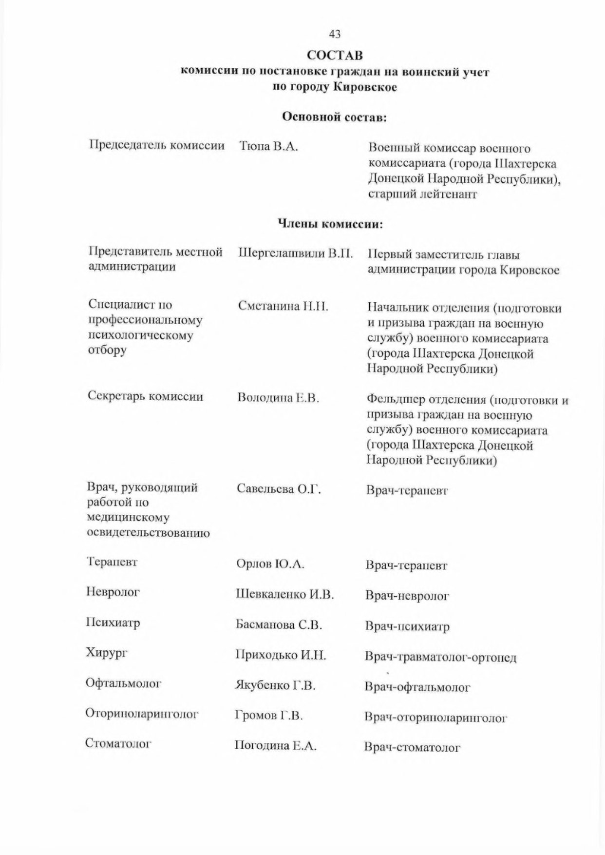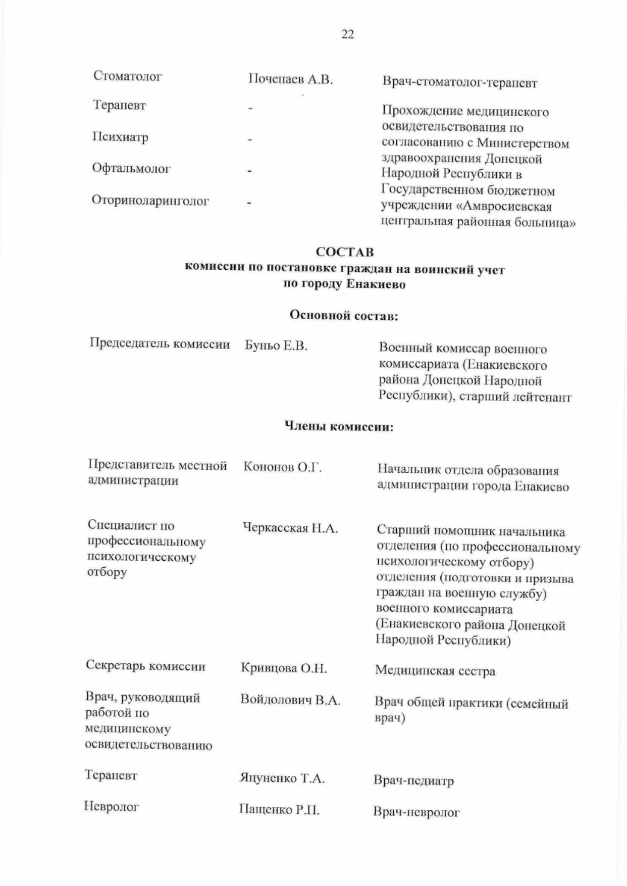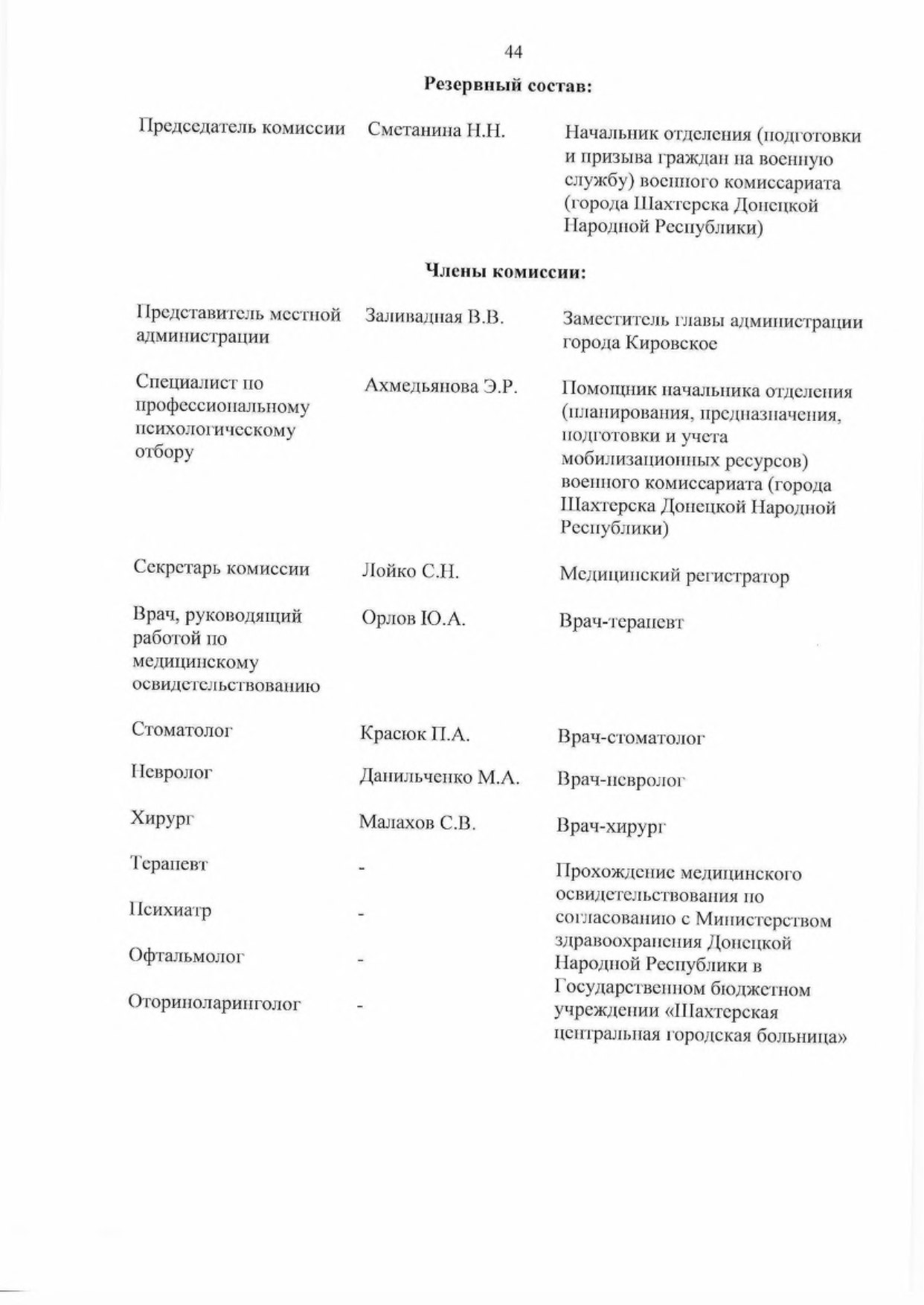 - Утвердить основной и резервный составы комиссий муниципальных образований в Донецкой Народной Республике по первоначальной постановке граждан на воинский учет (далее — комиссии) па 2023 год согласно приложению к настоящему Указу,