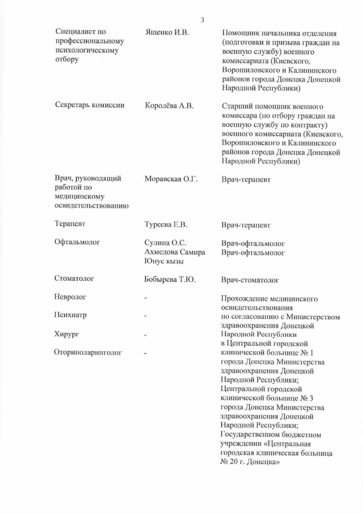 3.1. Медицинское освидетельствование граждан проводится в военных комиссариатах муниципальных образований в Донецкой Народной Республике.