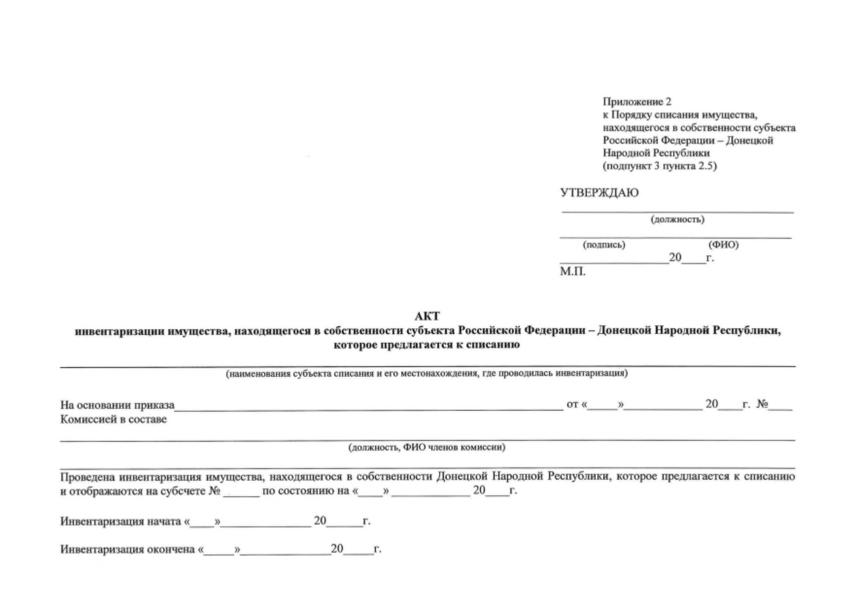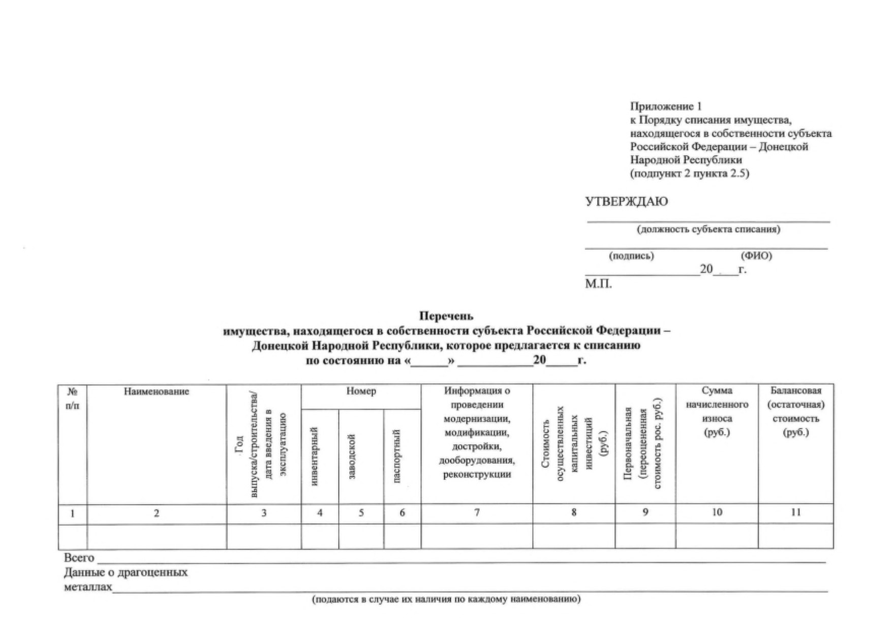 - Утвердить Порядок списания имущества, находящегося в собственности субъекта Российской Федерации — Донецкой Народной Республики (прилагается).