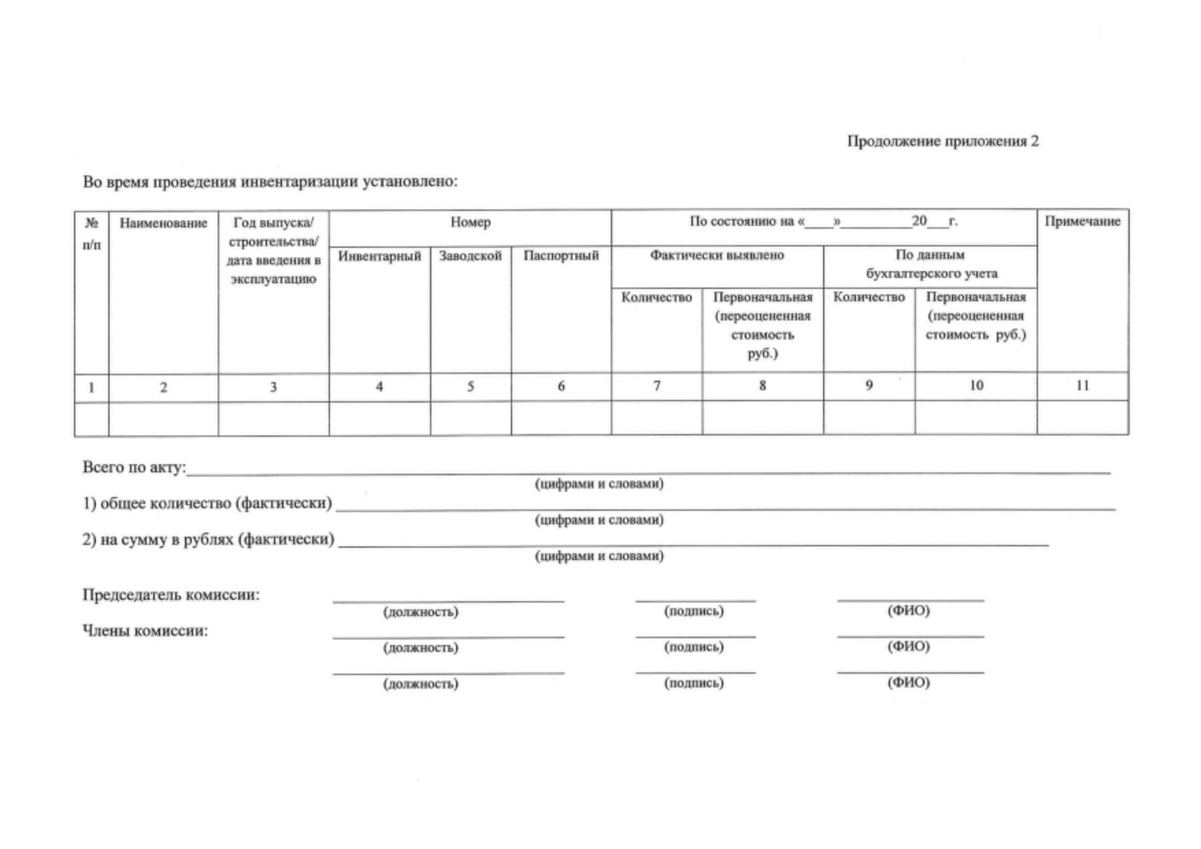 3) акт инвентаризации имущества, которое предлагается к списанию (приложение 2);