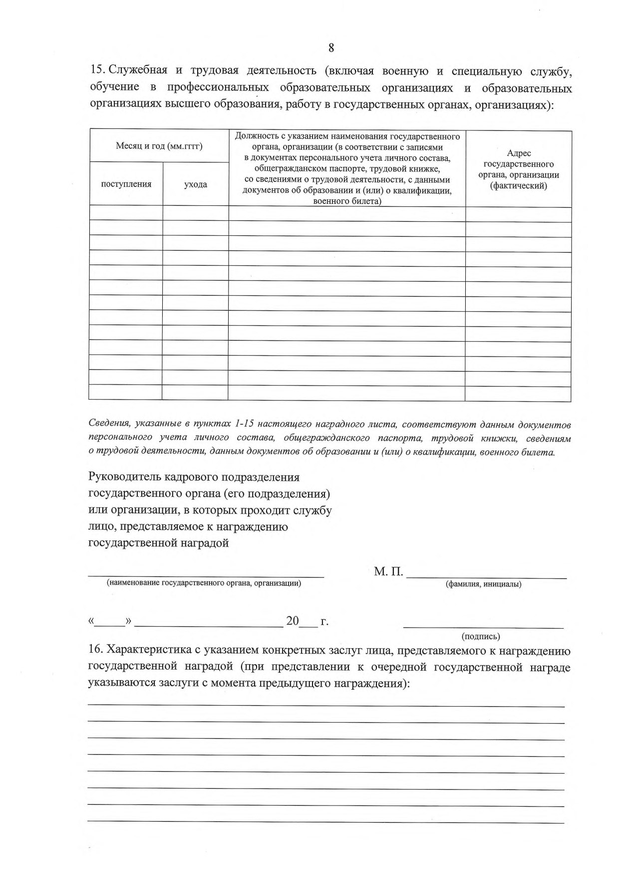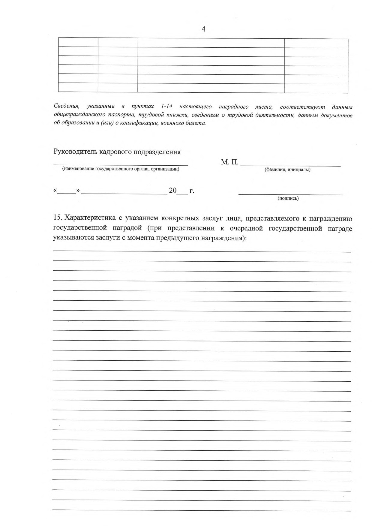 1.1. Наградной лист, оформленный в соответствии с правилами, утвержденными актом Руководителя Администрации Главы Донецкой Народной Республики.
