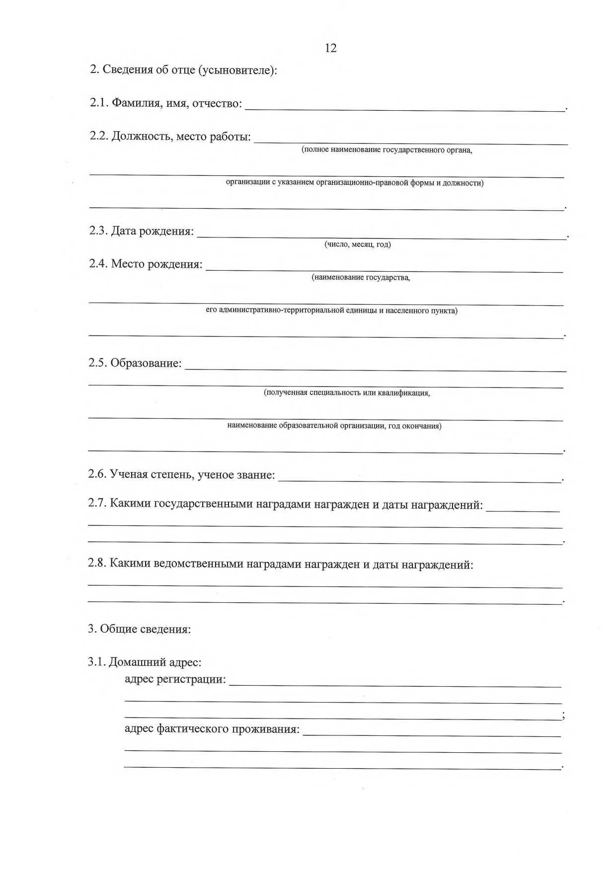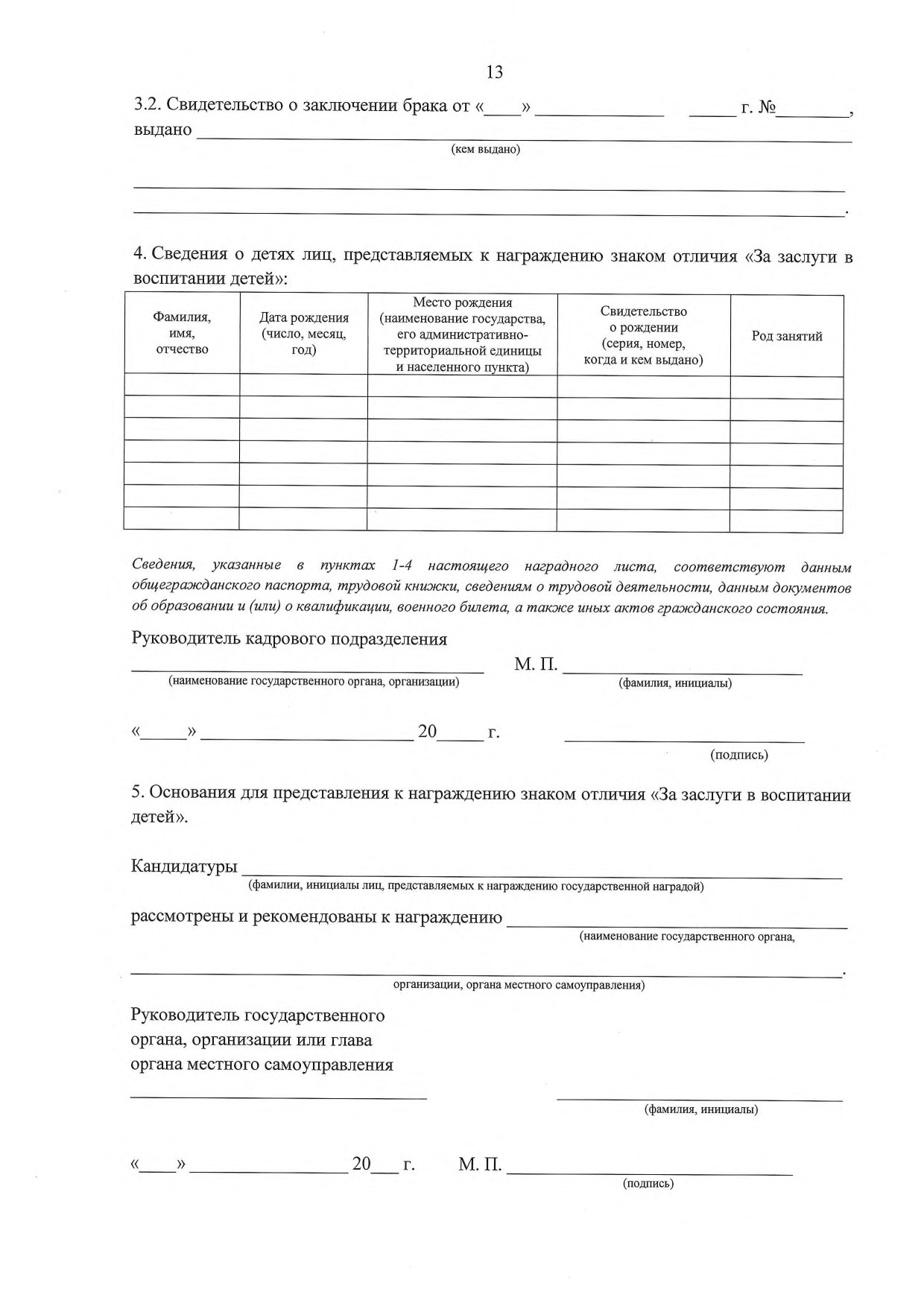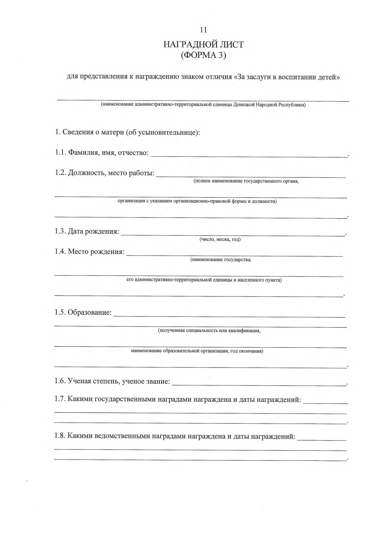 2.1.3. Форму 3 — для родителей (усыновителей), представляемых к награждению знаком отличия «За заслуги в воспитании детей».