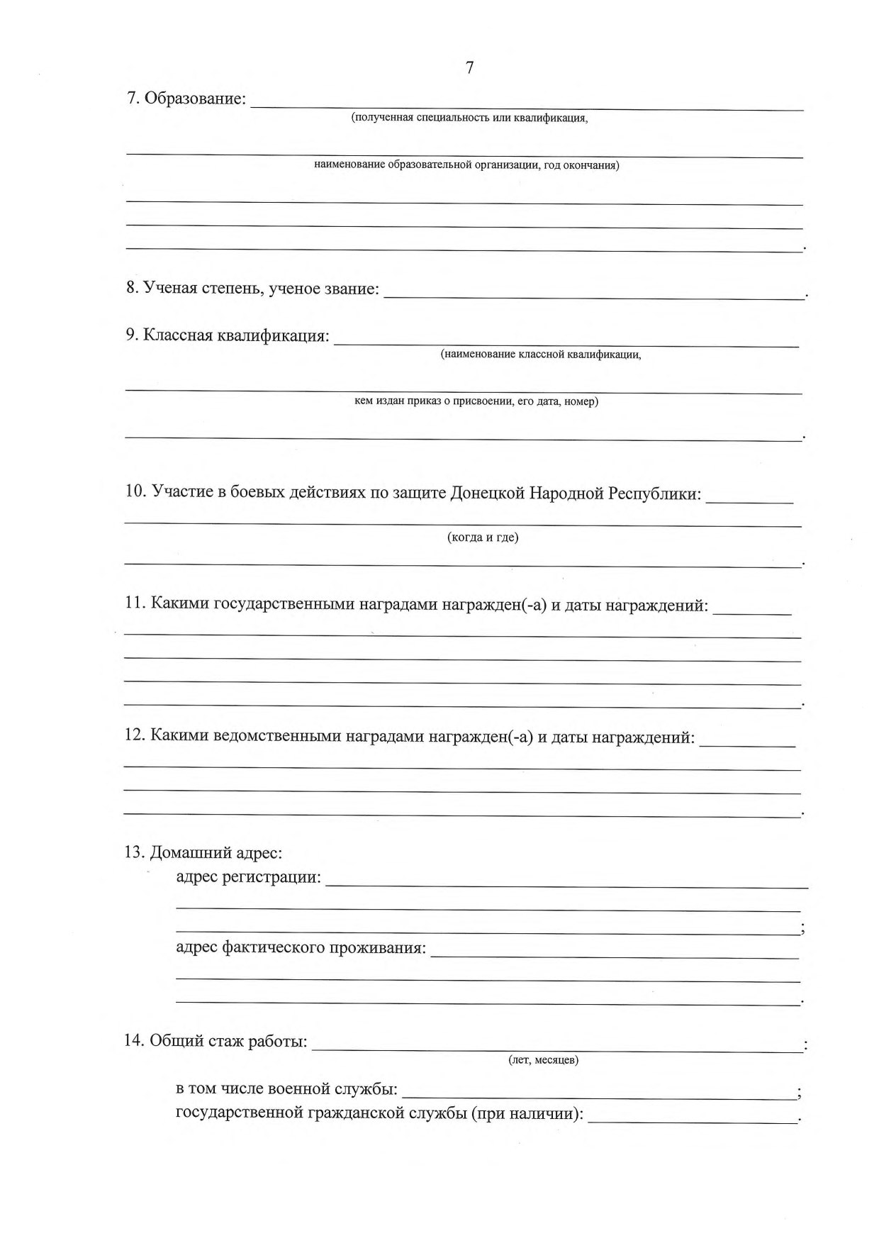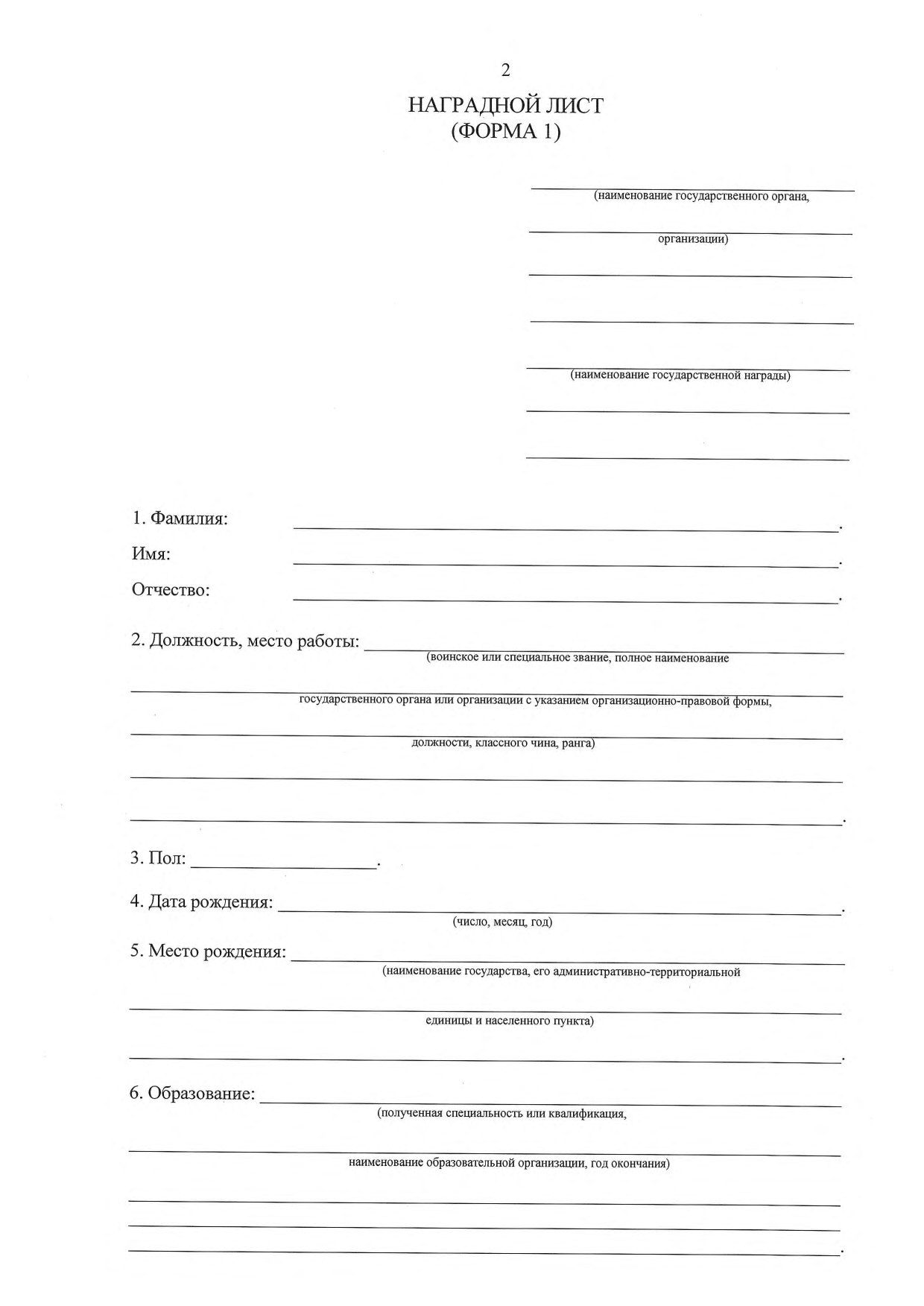 2.1. Формы наградных листов для представления к присвоению звания Героя Донецкой Народной Республики, звания Героя Труда Донецкой Народной Республики, к награждению государственными наградами Донецкой Народной Республики, присвоению почетных званий Донецкой Народной Республики, звания «Почетный гражданин Донецкой Народной Республики» (приложение 1):