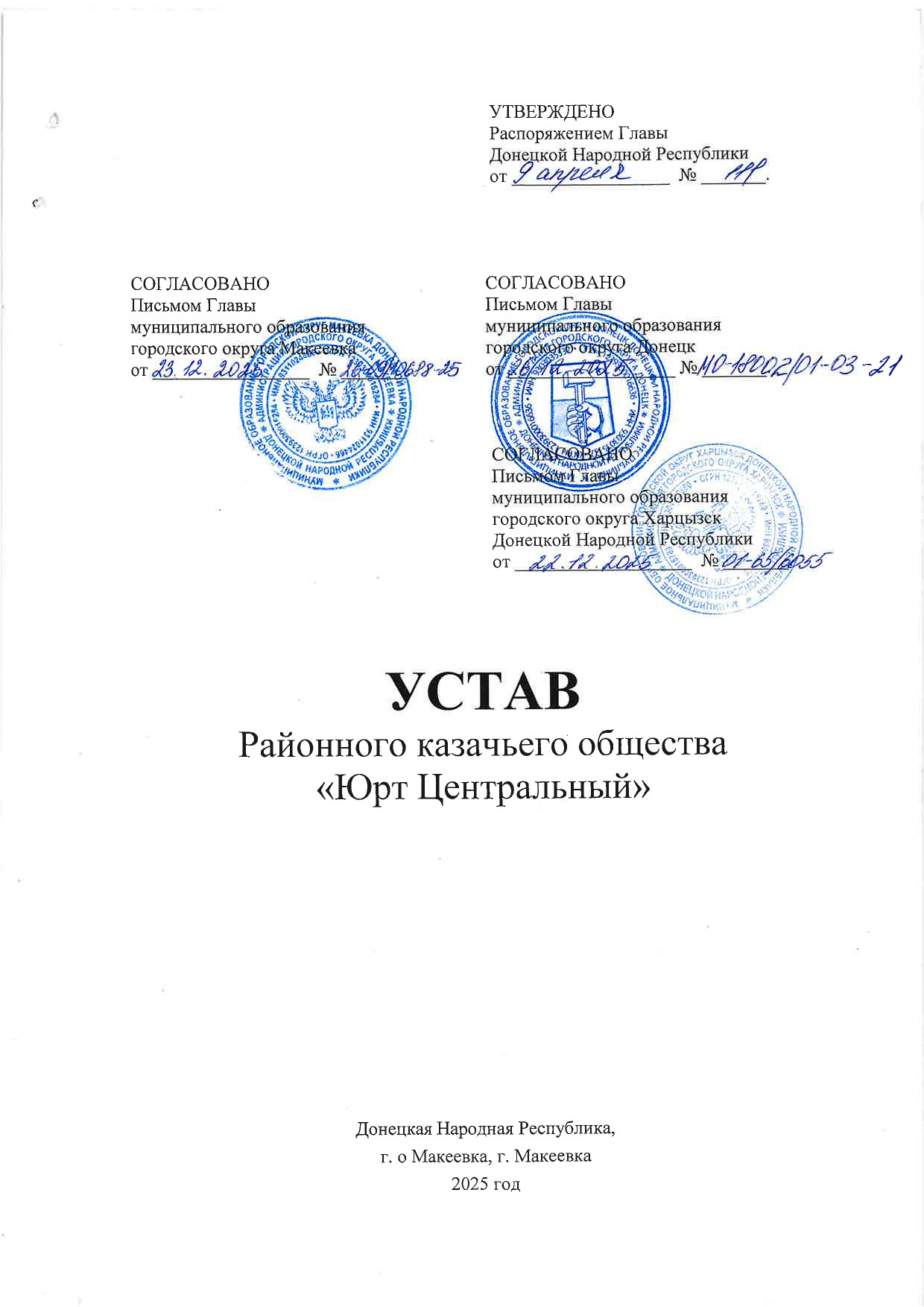 - Местонахождение органов районного казачьего общества - Донецкая Народная Республика, городской округ Макеевка, город Макеевка.