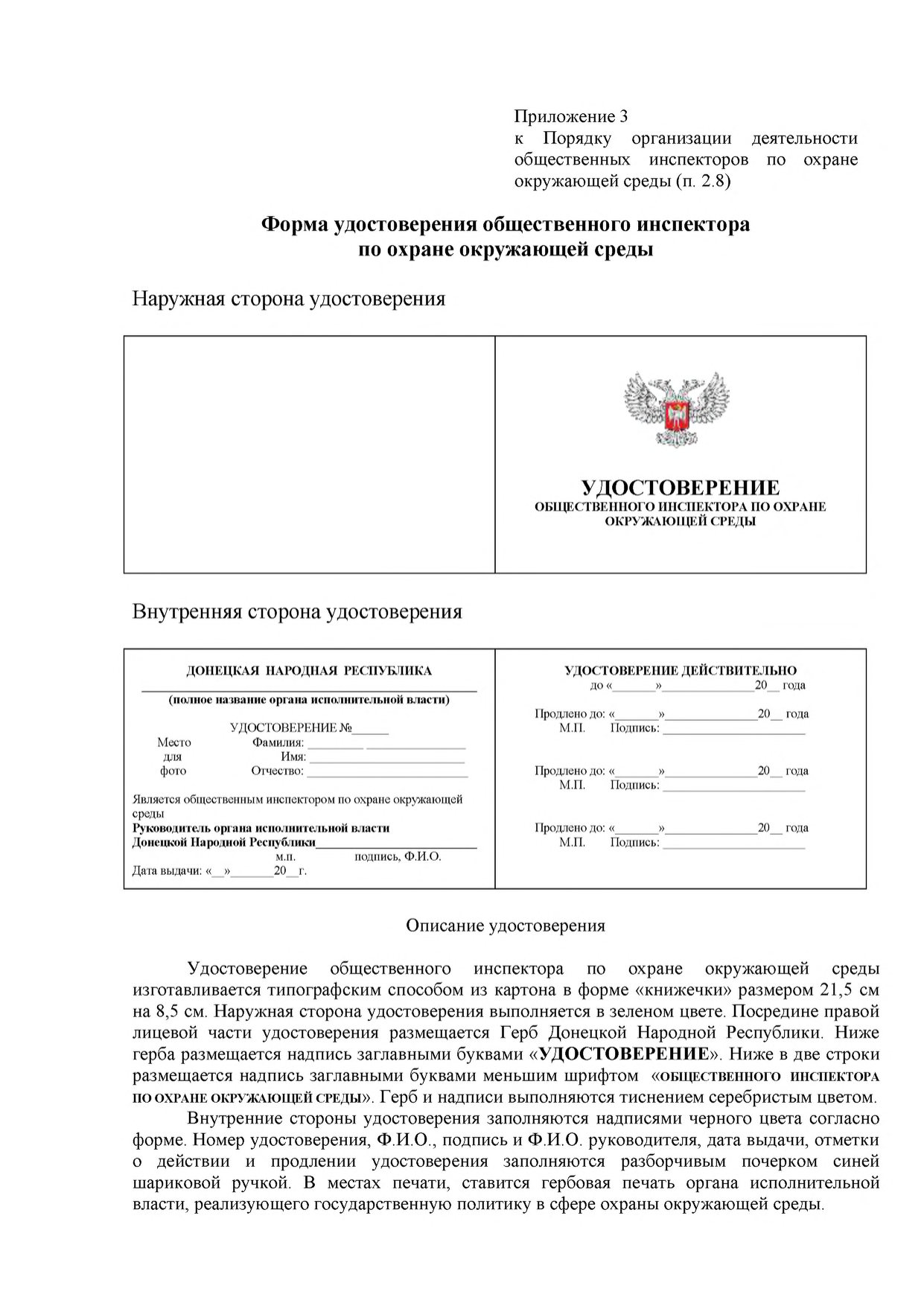 1.4. Общественные инспекторы в своей деятельности руководствуются Конституцией Донецкой Народной Республики, законами и иными нормативными правовыми актами Донецкой Народной Республики в сфере охраны окружающей среды, рационального использования и воспроизводства природных ресурсов, приказами и распоряжениями органа исполнительной власти и настоящим Порядком.