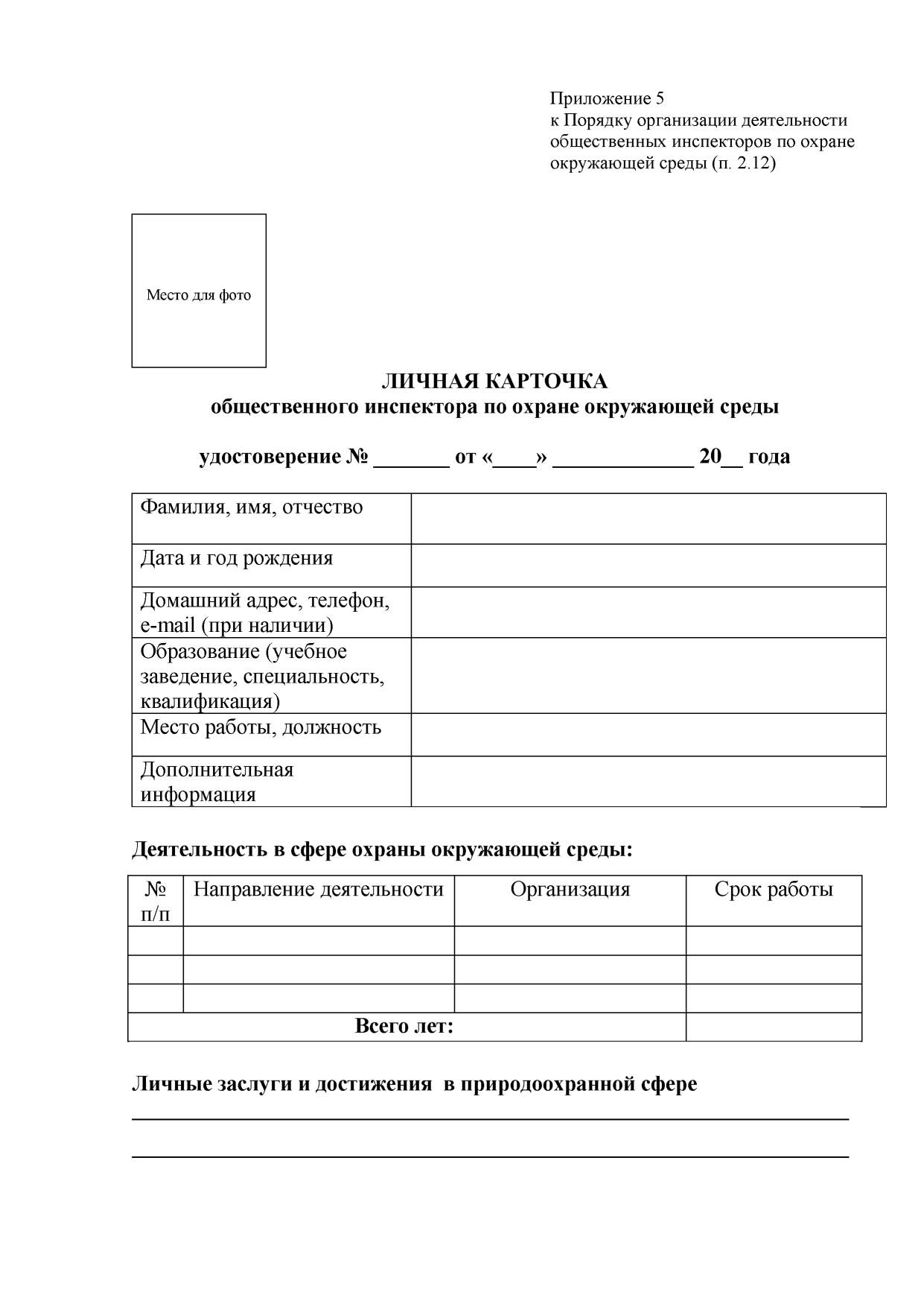 Результаты собеседования и проверки знаний фиксируются в карточке согласования о присвоении статуса общественного инспектора по охране окружающей среды (приложение 2).