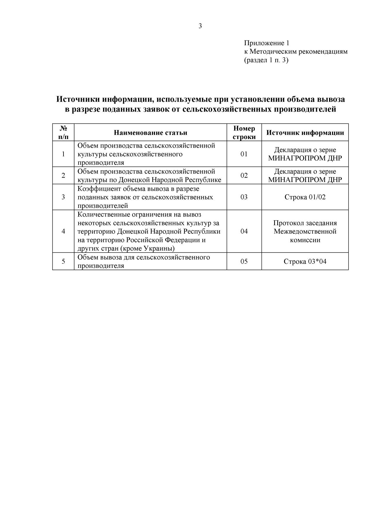 - Источники информации, используемые при установлении объема вывоза в разрезе поданных заявок от сельскохозяйственных производителей приведены в таблице согласно приложению 1 к настоящим Методическим рекомендациям.
