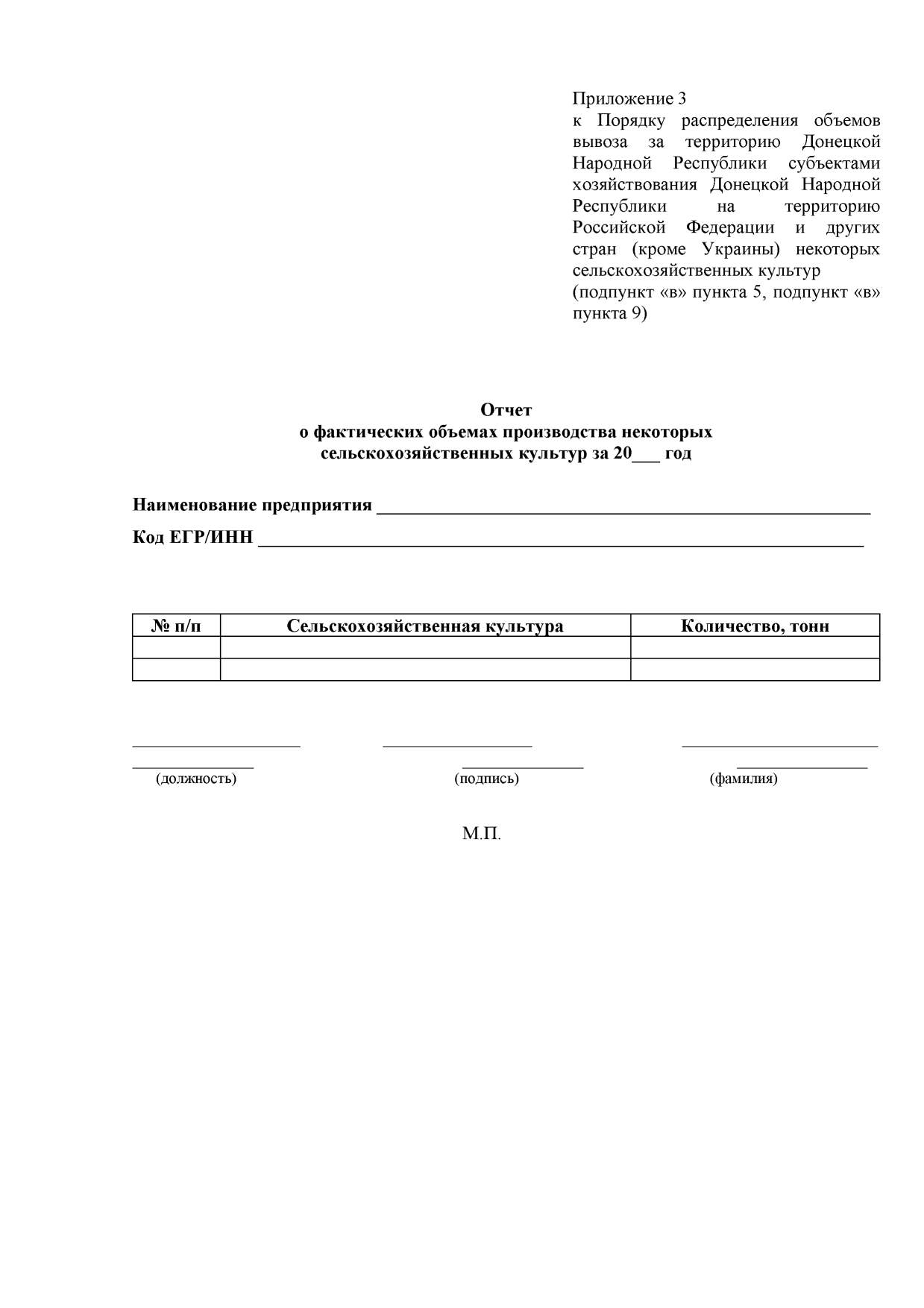 В настоящей строке указываются данные о количественных ограничениях на вывоз некоторых сельскохозяйственных культур за территорию Донецкой Народной Республики на территорию Российской Федерации и других стран (кроме Украины) установленные Межведомственной комиссией.